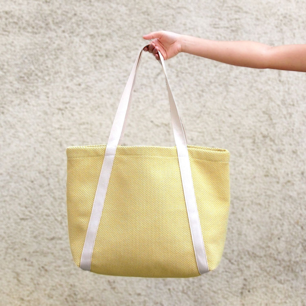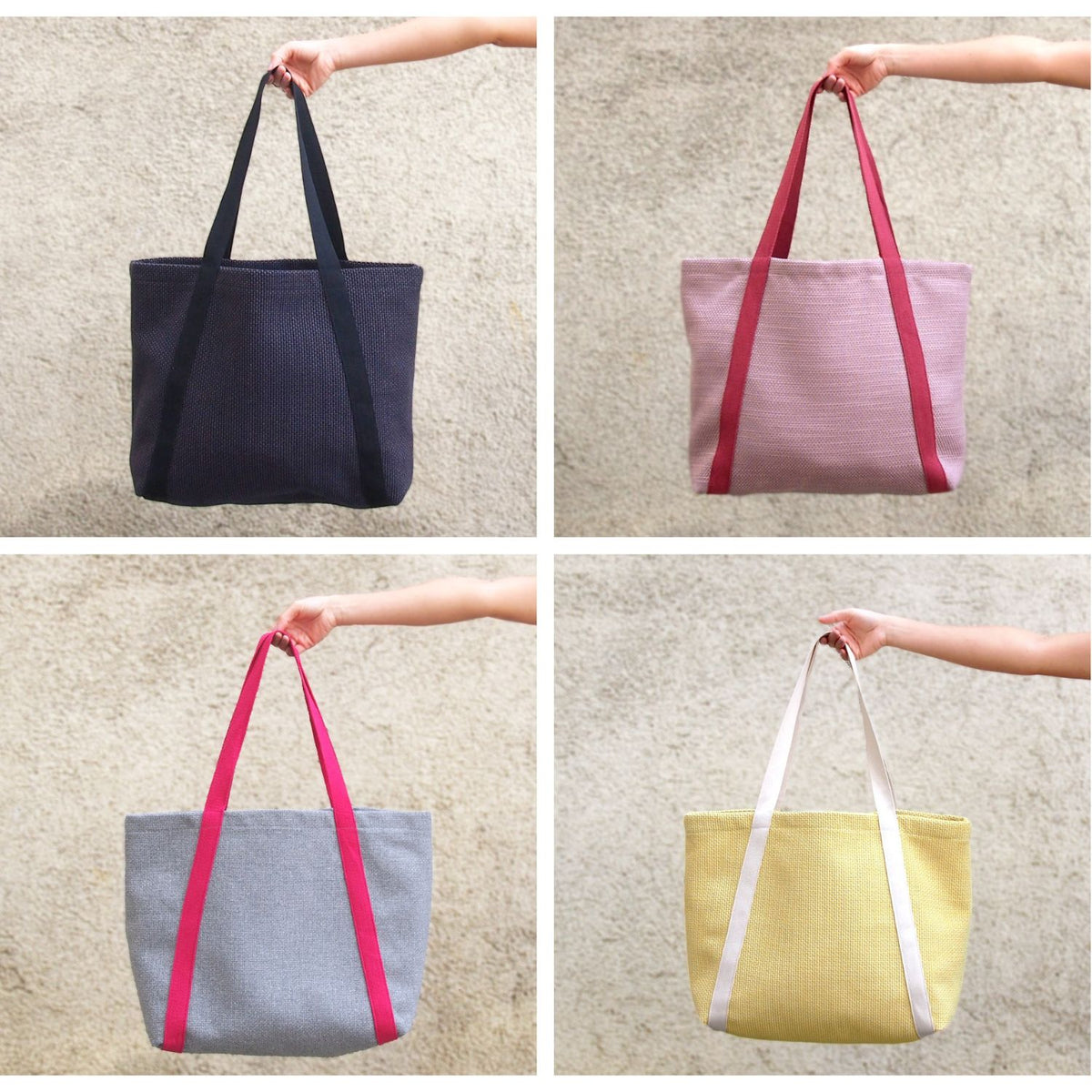 Nur gewebte Stoffe. Umso steifer der Stoff, umso mehr Form hat die Tasche. Es eignen sich sehr gut Einrichtungsstoffe, z.B auch aus recyceltem Polyester. Zudem sollte der Stoff auch eher fest/dick sein, damit die Tasche robust ist und nicht schnell reißt.