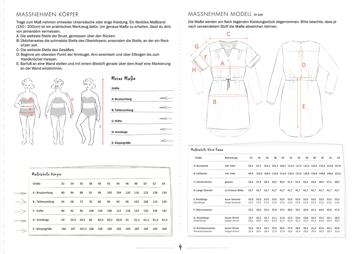 Für das Schnittmuster Kleid/Bluse Emma gibt es eine Nähreise (= ausführlicher Online-Nähkurs) mit den folgenden Inhalten: